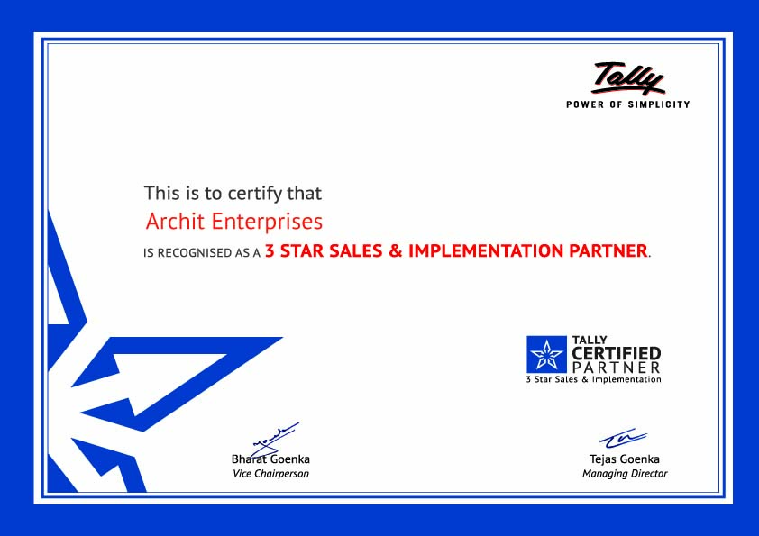Archit Enterprises is a company dealing in ERP Solutions, Tally Software Solutions, Cloud Solutions and other IT Services, operating in Nashik, Pune Mumbai and Satara. With experience of more than 12 years in Tally Accounting Software and other ERP Solutions. Archit Enterprises enjoys the status of ‘Three Star Certified Tally Partner – Sales & Solutions’ for providing Tally software licenses, expert Tally support and customized ERP solutions.